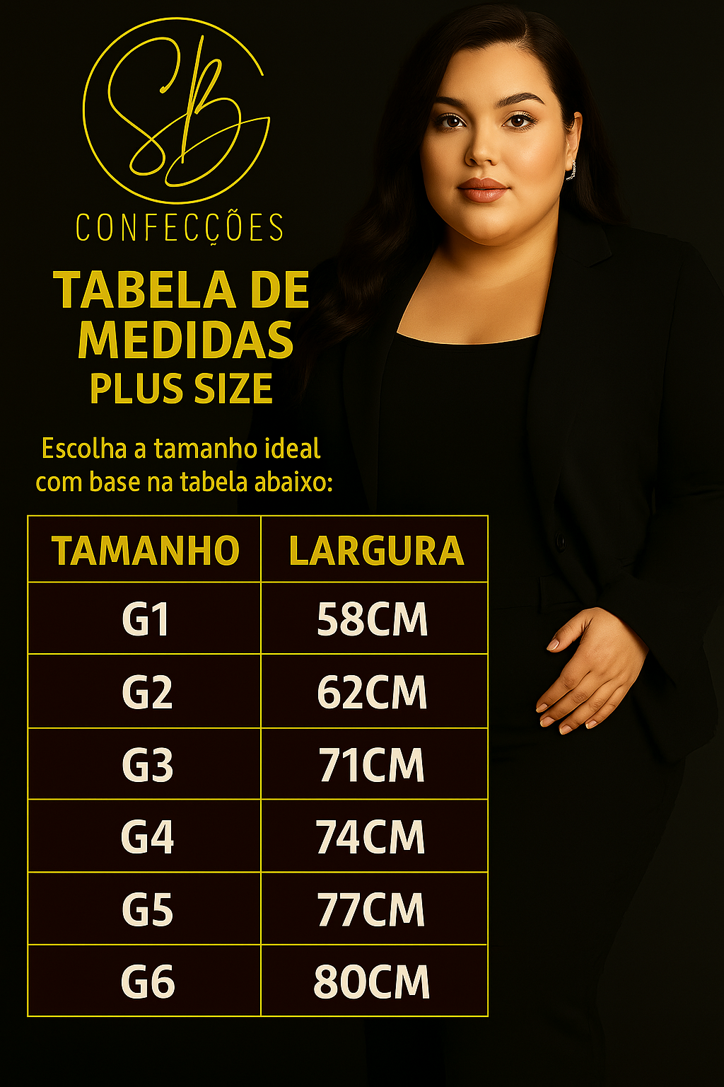 Tamanhos do GG ao G2: Pensado especialmente para atender as necessidades do corpo plus size, garantindo que cada mulher se sinta valorizada e confiante.